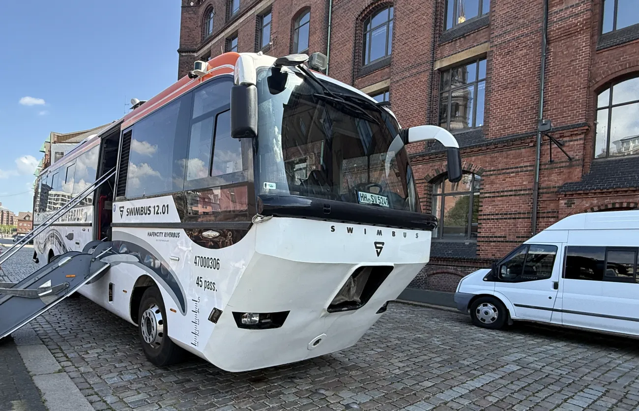 After the round trip through HafenCity, the most exciting moment of the tour follows: in Rothenburgsort, in the Entenwerder area, the bus transforms into a boat. The amphibious vehicle glides slowly but impressively into the Elbe via a specially built ramp. For the guests on board, this is a real experience - accompanied by a slight splash of water and the feeling of being on the move in a completely new way.